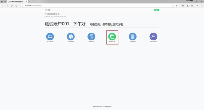 步骤5:用户也可以在“校园网自助服务”页面内进行密码修改、移动绑定账户的更改及解绑等各项自助服务操作。
