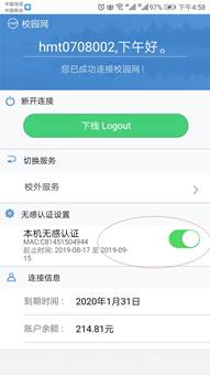 使用移动宽带账户上网的用户,需要在自服务页面(http://self-service.hhu.edu.cn)“套餐变更”中变更为“移动用户无感认证服务”后,才能进行上述打开无感认证开关操作。