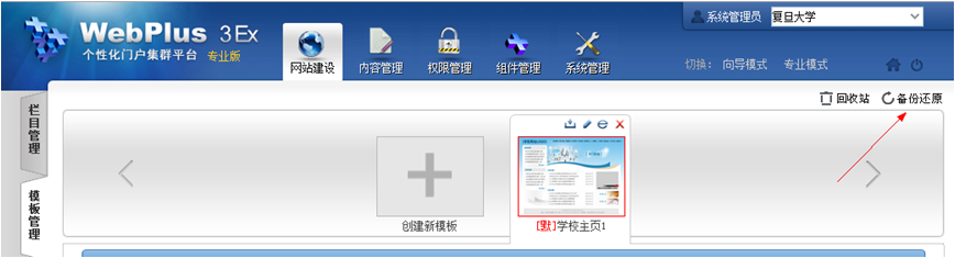 在做模板修改前,可以备份模板,并可以通过设置还原点,回到任意一个还原点