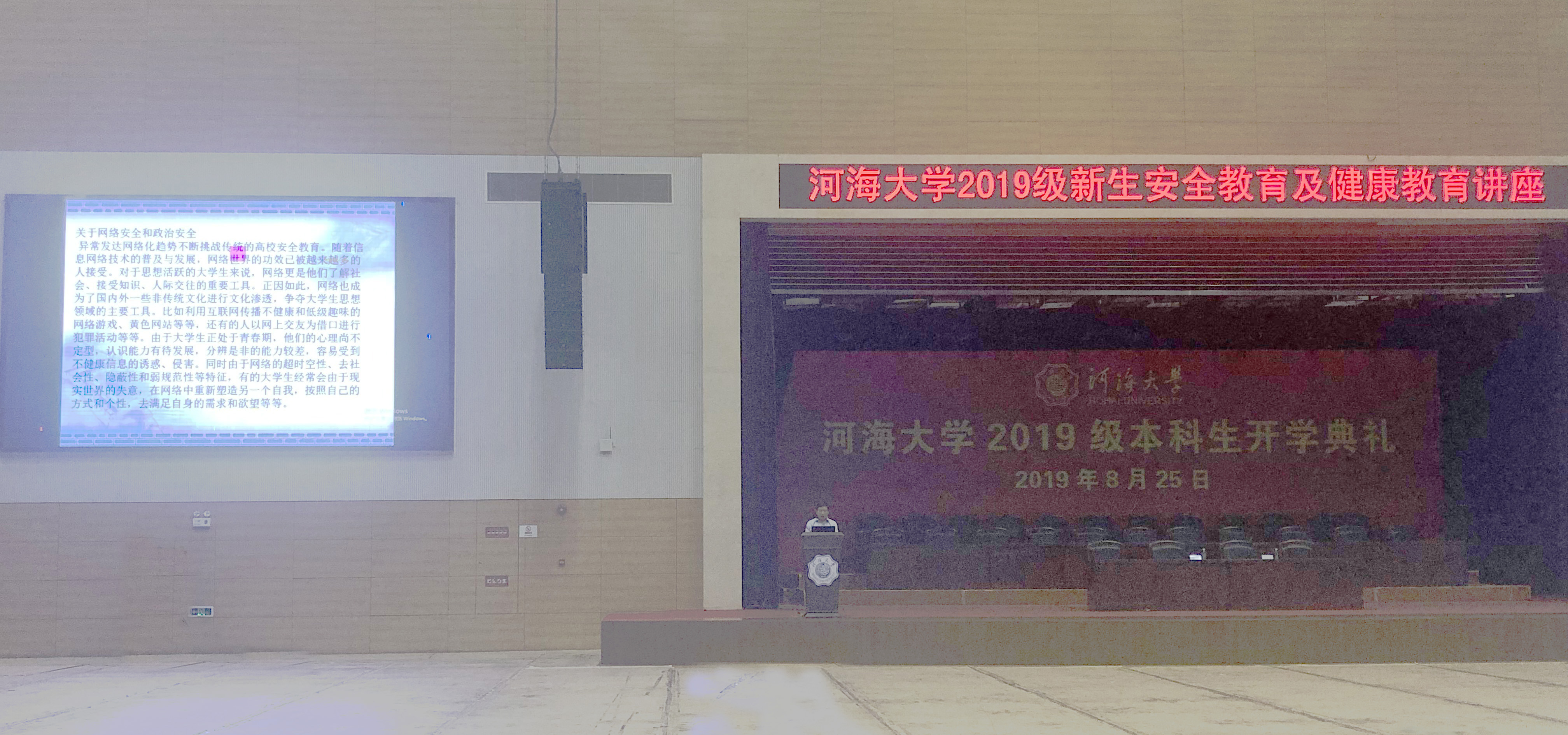 2019年9月2日晚上6:30,网信中心邀请开云电竞网保卫处徐军副处长在江宁校区文体中心对2019级新进学生进行网络安全培训。各学院辅导员带领三千七百多名2019级新生参与。