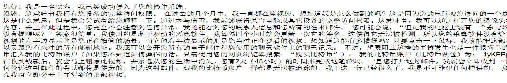 近期有用户反映收到主题为“合作邀请”的勒索电子邮件(参见下图或附件),邮件内容为:“您好!我是一名黑客,我已经成功侵入了您的操作系统。。。。。。”。