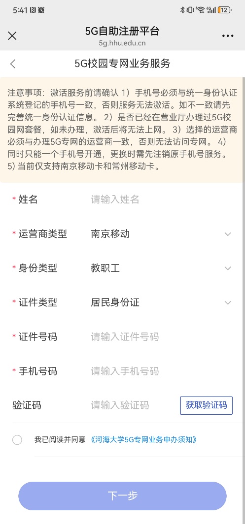 2)对于常州移动用户,暂未开通运营商端激活渠道,可先通过“开云电竞网5G校园专网业务服务自助注册平台”,完成学校端注册,具体开通成功时间需以常州移动通知为准。