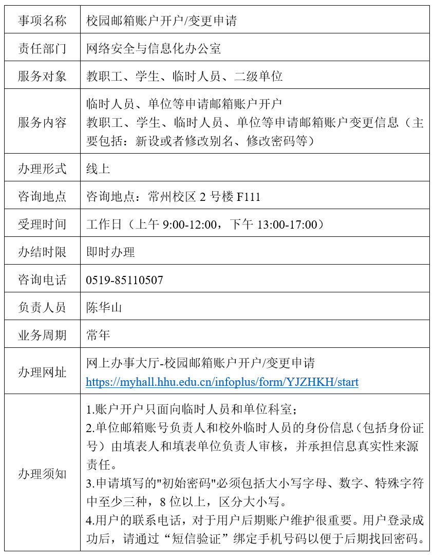2.单位邮箱账号负责人和校外临时人员的身份信息(包括身份证号)由填表人和填表单位负责人审核,并承担信息真实性来源责任。