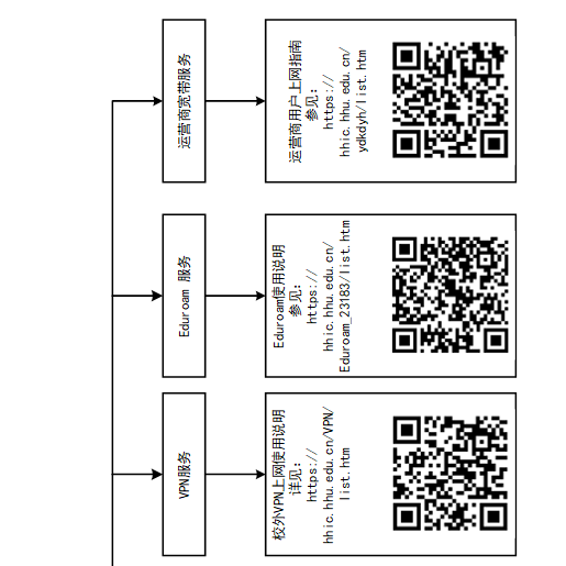 服务内容 | 校园网相关服务主要有:上网账号、资费标准及套餐修改、接入认证、无感知认证、缴费方式、VPN服务、Eduroam服务、运营商带宽服务 |
