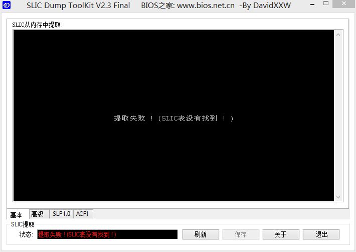 1. 右键“以管理员身份”运行“SLIC_Dump_ToolKit.EXE”,如对话框左下角区域所示,如显示“提取失败!(SLIC表没有找到)”则进入步骤2