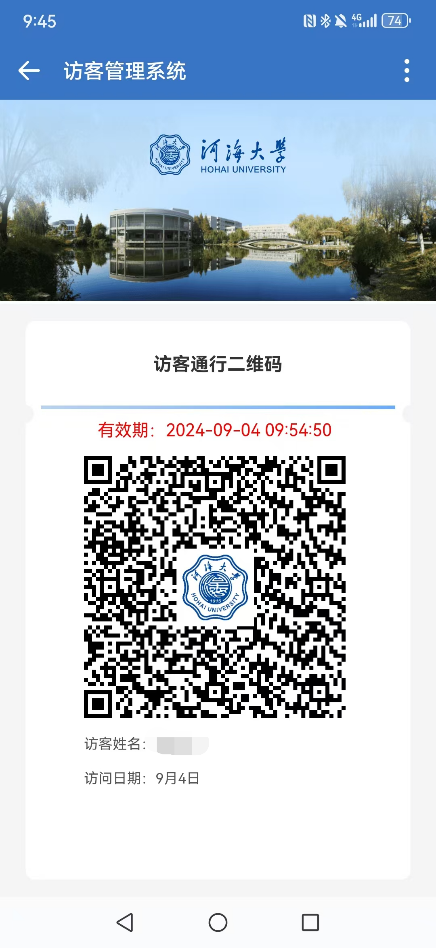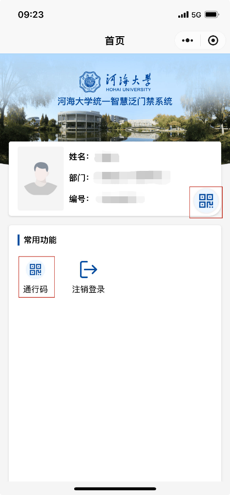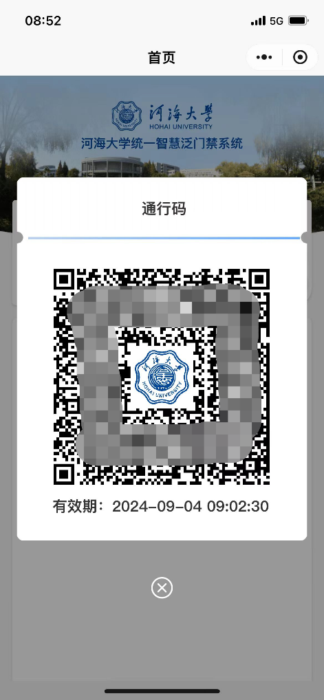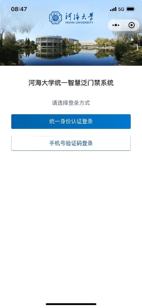 ①扫描二维码,登录智慧河海小程序或门禁系统H5页面。