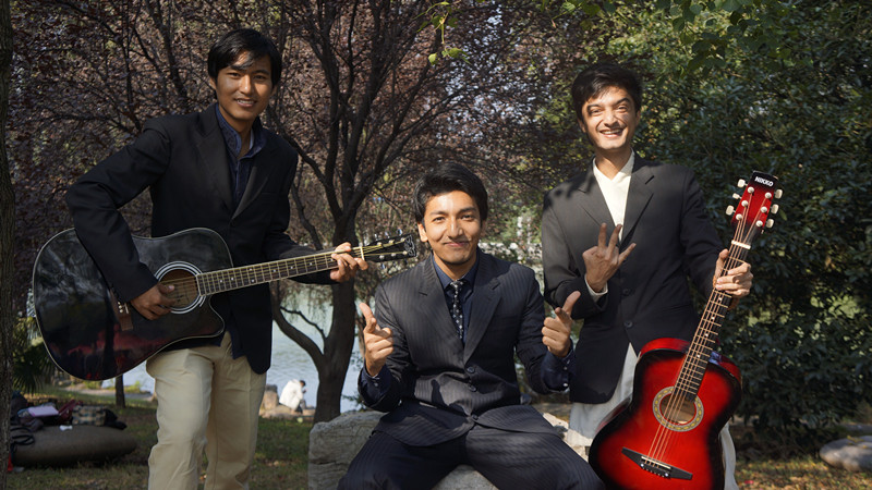 我校阿富汗留学生精心准备的国家风情展,展出了包括阿富汗国情风俗、文字语言、工艺品、服饰服装和各类美食,吸引了大量游客前来观赏,成为全场最受关注的展位。在文化交流之余,阿富汗的同学纷纷登上主舞台载歌载舞。尼泊尔3名留学生组成的开云电竞网冰山乐队,为观众现场弹唱中文歌曲《童话》,同样取得了良好的演出效果。
