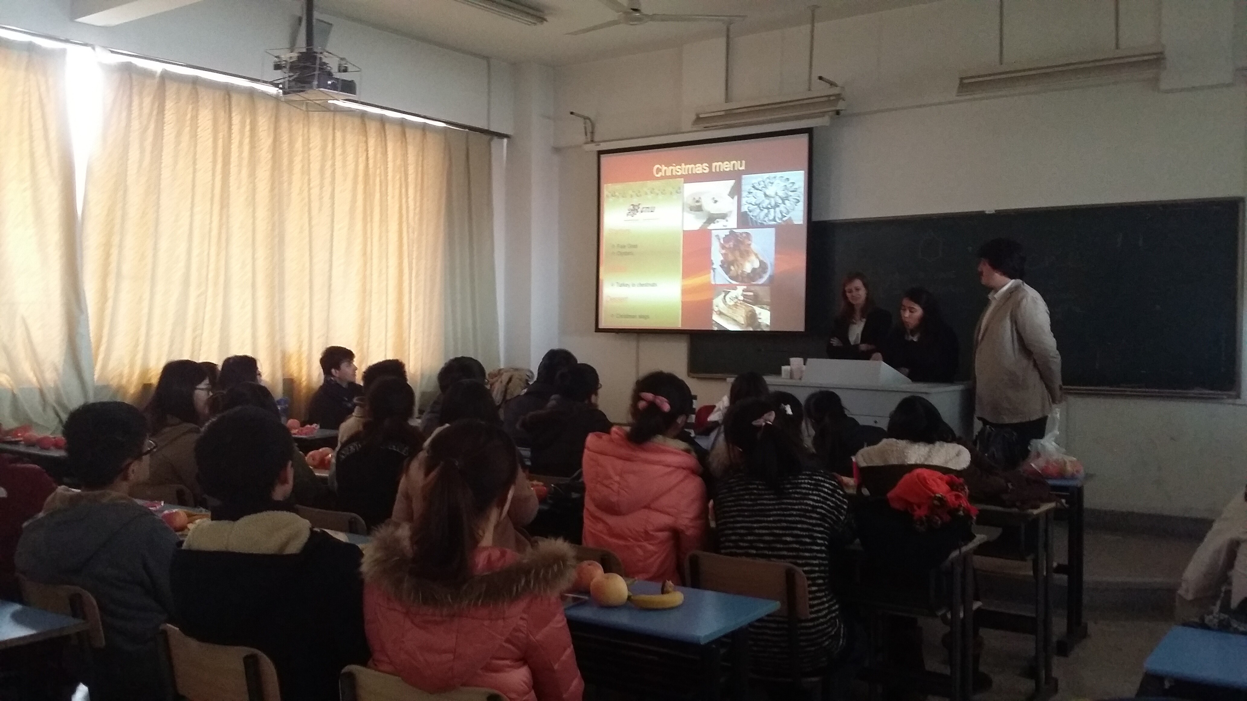 来自法国杜埃高等矿业学院的三名法国交换生向中国学生介绍了法国高等教育体系和法国生活、文化、节日等习俗;参与我校中法合作培养项目的学生向法国学生教授了简单的中文日常用语和拜年俗语。随后,双方同学用法语进行了交流。
