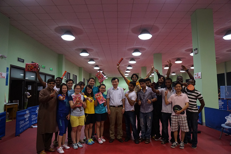 男子单打冠军由巴基斯坦籍留学生阿凡(MUNIR MUHAMMAD AFFAN)获得,女子单打冠军由蒙古籍留学生梅吉(PUREVSUREN, BATCHIMEG),他们组成的双打又在混双决赛中战胜了越南代表队选手。赛后,国际教育学院张海军书记为获奖选手颁奖。