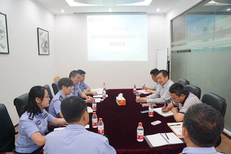 杨兴亮副总队长感谢了学校在留学生教育管理和社会管理工作方面所作出的贡献,就如何服务高层次人才、留学生实习实践与勤工助学、留学生招收与日常管理等方面展开调研。