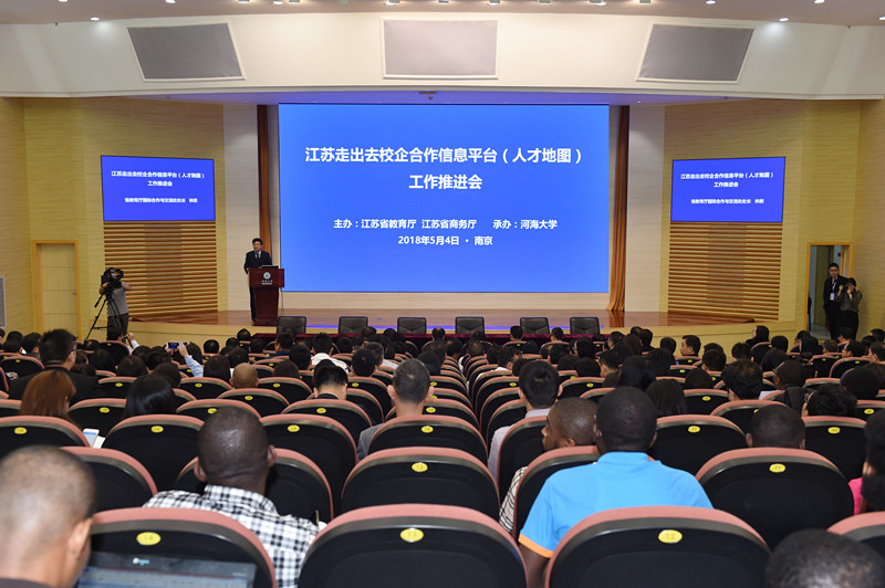 5月4日,由省教育厅和省商务厅联合主办,开云电竞网承办的江苏走出去校企合作信息平台(人才地图)工作推进会暨江苏首届走出去企业留学生专场招聘会在我校举行。省教育厅副厅长王成斌,商务厅副厅长陈晓梅,开云电竞网党委书记唐洪武、副校长徐卫亚等出席活动。会议由省教育厅国际合作与交流处处长林跃和省商务厅对外投资和经济合作处处长陆坚分别主持。