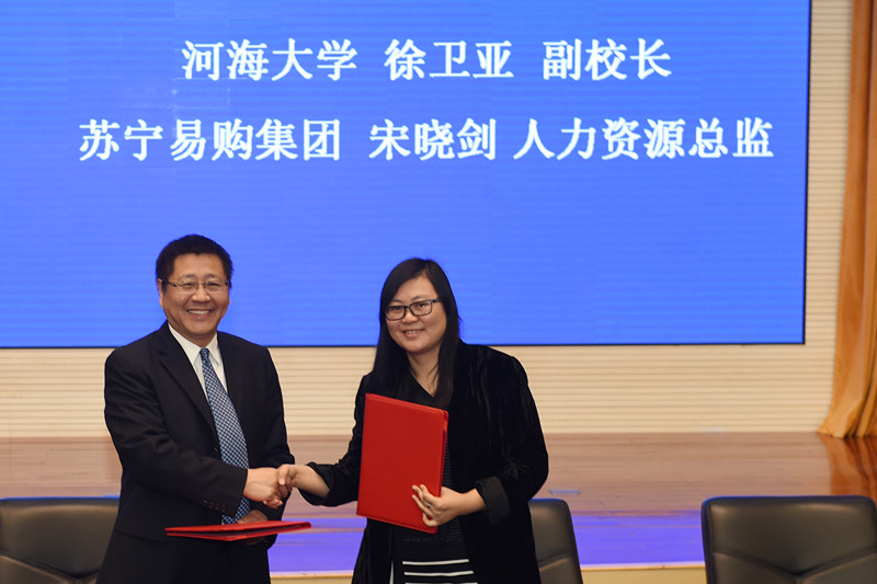 大会还举行了12所高校与13家企业的校企合作签约仪式。徐卫亚副校长与苏宁易购集团股份有限公司人力资源总监宋晓剑、苏交科集团股份有限公司沈晓平副院长签署了校企合作协议。