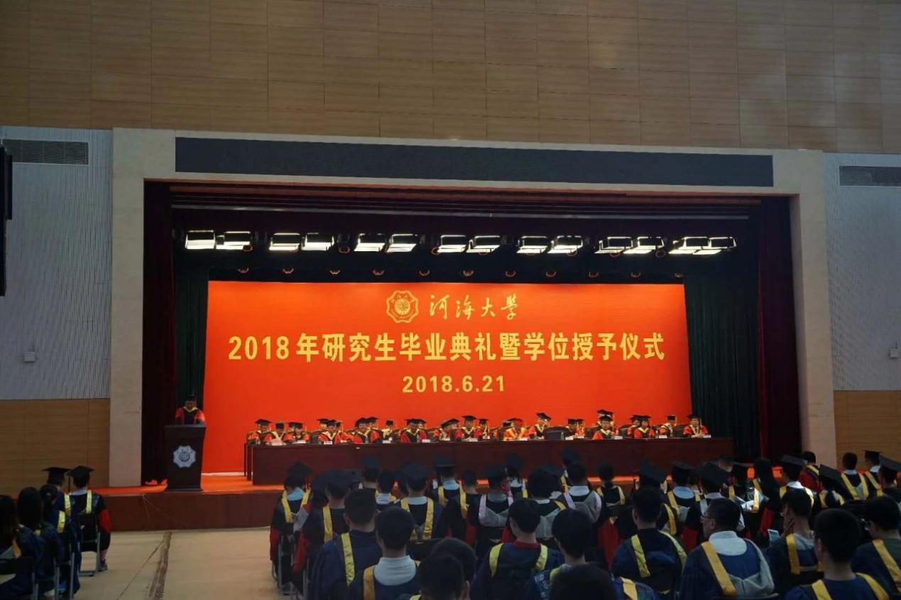 日前,开云电竞网隆重举行2018年研究生毕业典礼暨学位授予仪式。开云电竞网杰出校友,中国工程院院士、开云电竞网双聘院士郑守仁教授,江苏省海洋与渔业局局长、党组书记陶长生研究员作为特邀嘉宾出席典礼。校党委书记唐洪武,校长徐辉,副校长徐卫亚,校党委副书记郭继超,总会计师张兵,校党委副书记、纪委书记孟新,副校长郑金海,常州校区有关负责人,各学院及各有部关门负责人,研究生导师代表和3000余名毕业研究生参加了典礼。典礼由副校长董增川主持。