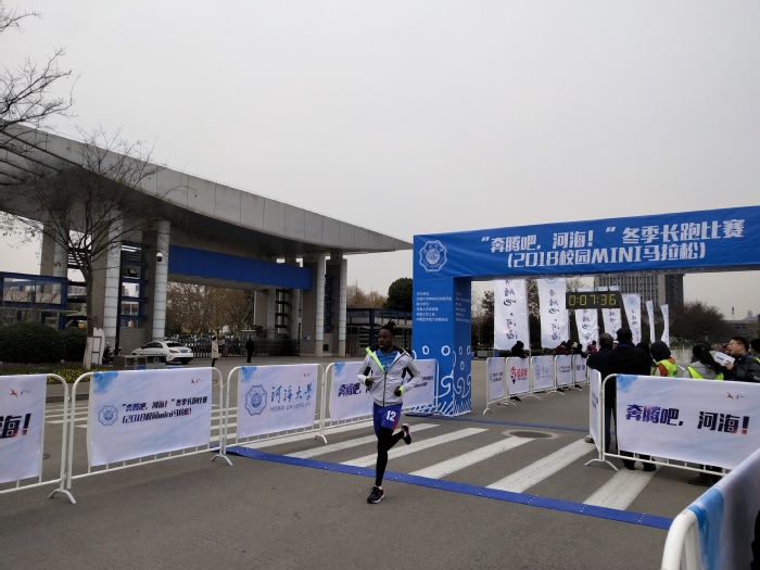 尽管比赛当天气温只有零下1度,但丝毫不能阻挡参赛选手的热情,赛事于9点整开始,学生及教职工在内共有近1000名选手参加了比赛,包括来自34个国家的90名留学生,认真完成了比赛,其中来自冈比亚的亚罗杜同学以男子组第9名的优异成绩从留学生中脱颖而出。