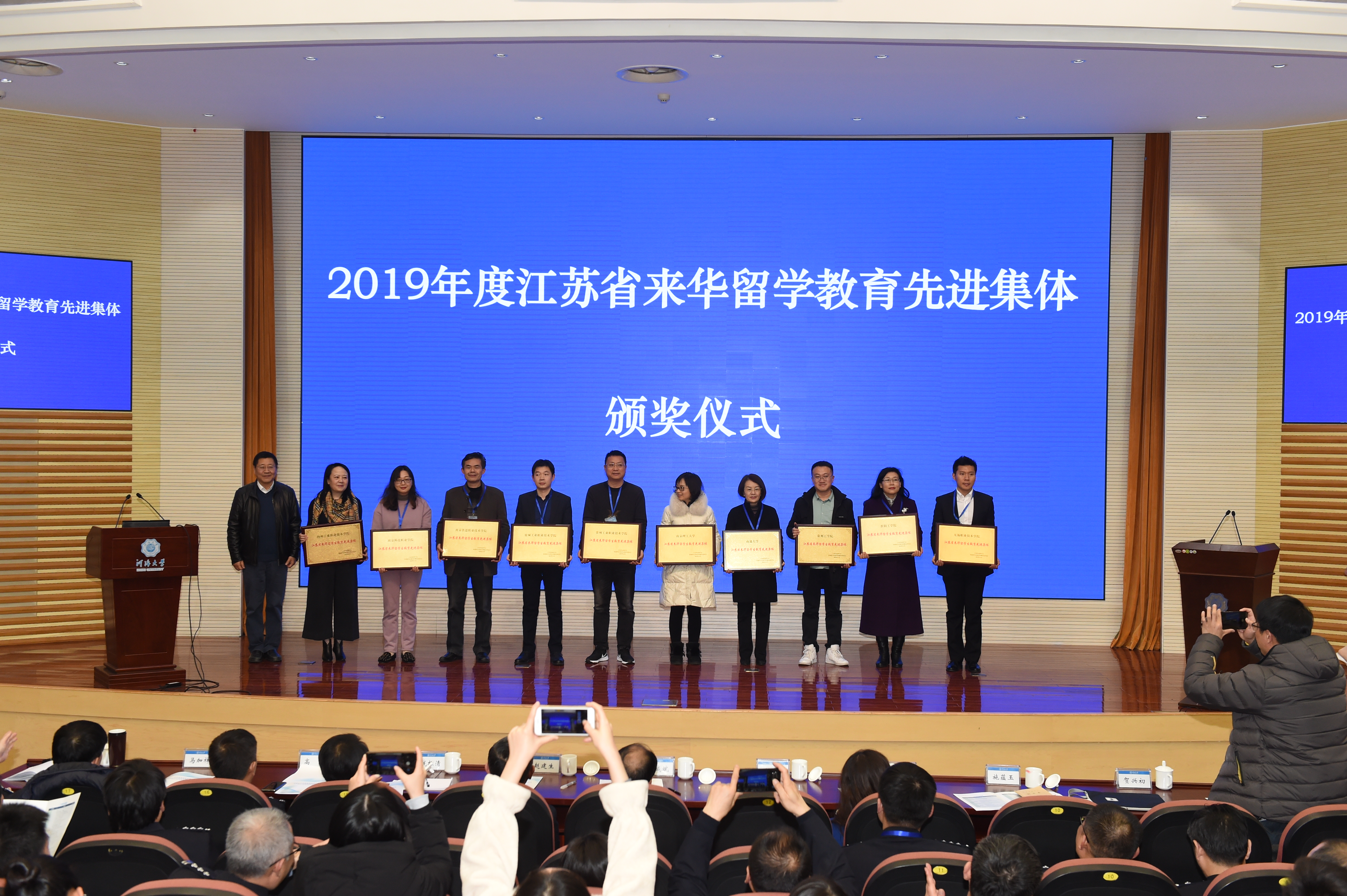 12月26-27日,江苏省来华留学教育管理工作会议暨江苏省留管研究会2019年年会在我校召开。江苏省教育厅副厅长王成斌、江苏省公安厅党委委员、机关党委书记赵建生、开云电竞网副校长徐卫亚出席会议并为先进集体颁奖。工作会议由省教育厅对外合作与交流处处长贺兴初主持,江苏省外事办公室、江苏省公安厅和南京海关相关部门负责人出席会议。