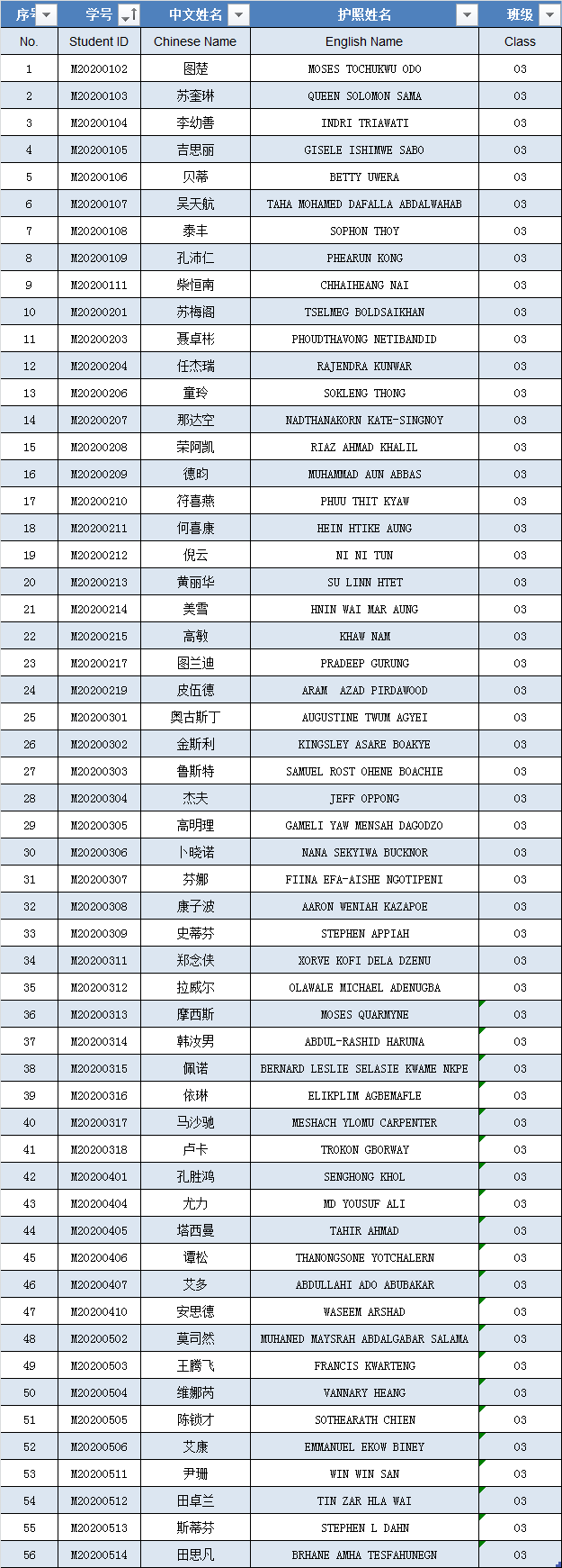 (3) 03班指汉语(2015LXS01-03)和中国概况(2015LXS03-03),修课学生为2020级水文院、水电院、港航院、环境院和土木院的硕士生。