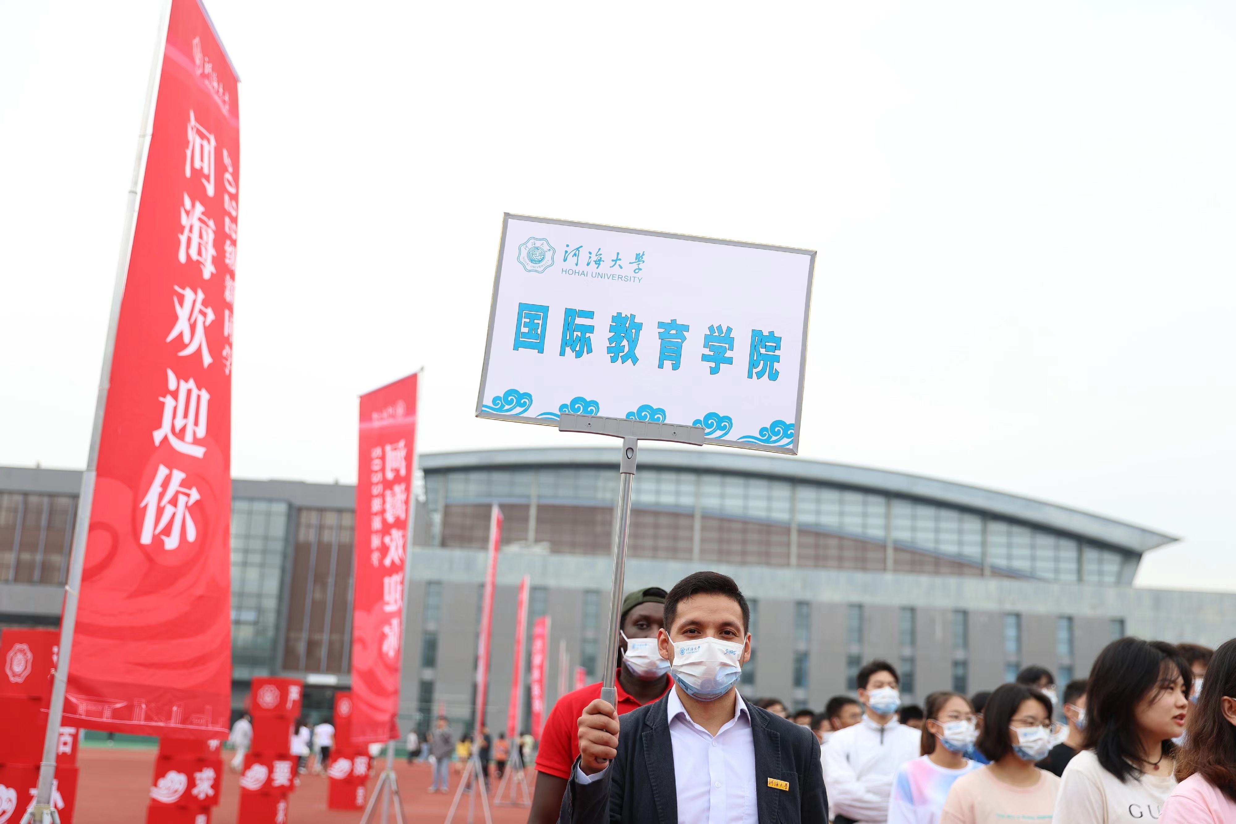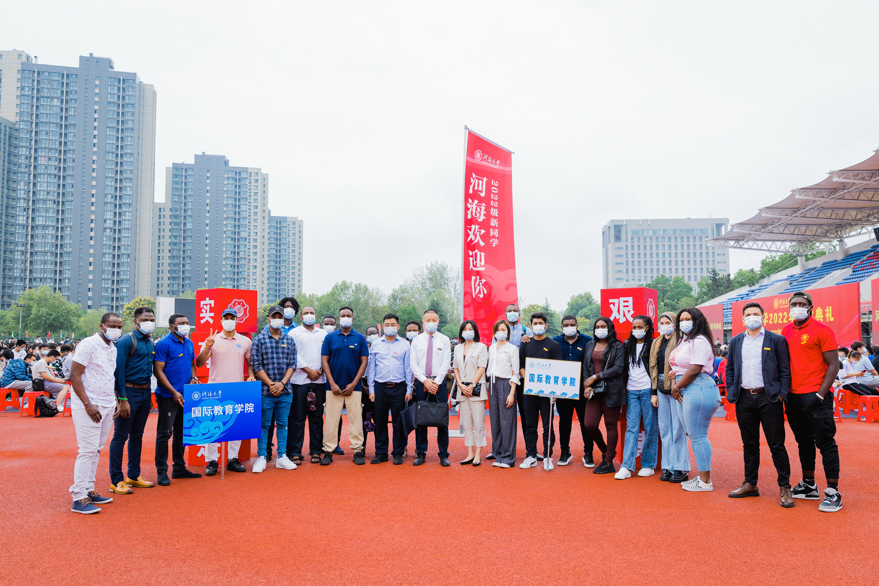 916日上午,我校2022年开学典礼在江宁校区体育场举行。学院院长陈红胜、书记任海莹及部分老师代表参加活动。典礼以线上、线下结合方式进行,来自12个国家的20名留学生新生代表现场参加开学典礼,其他新生通过直播观看典礼。