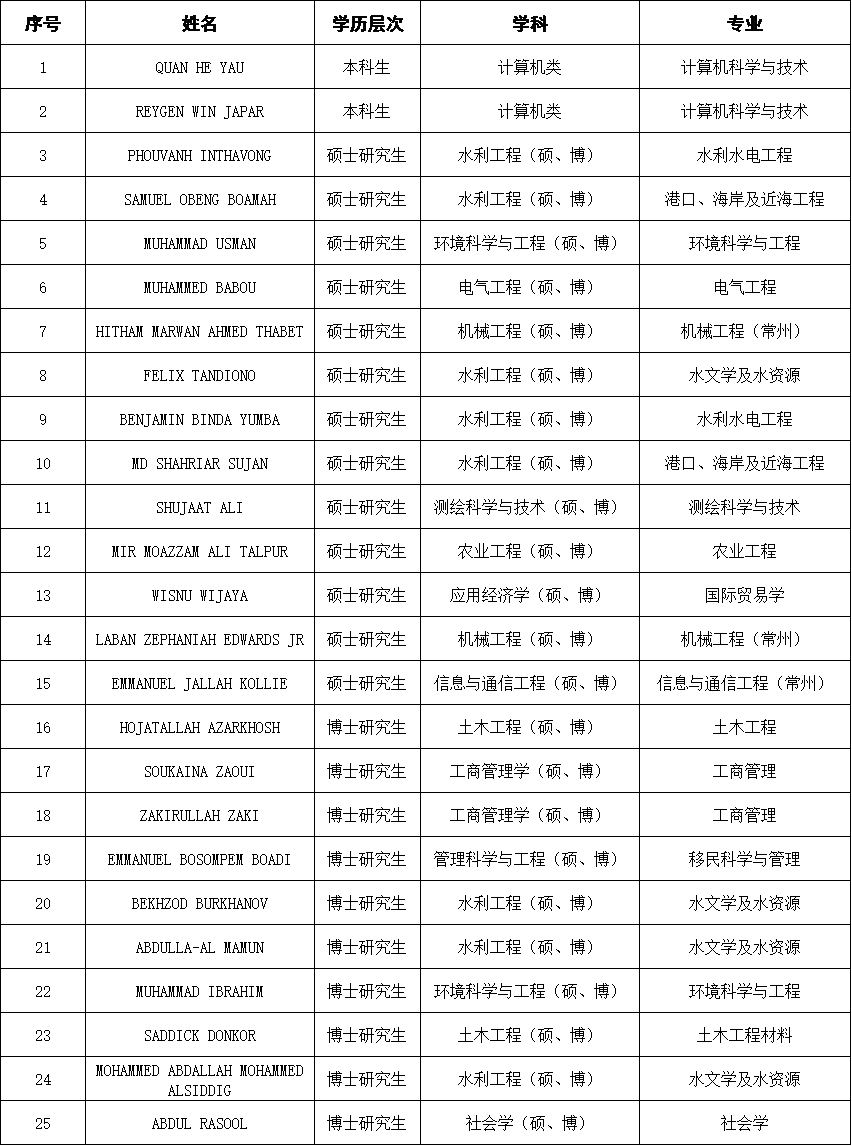 根据《留学江苏政府奖学金管理办法》(苏财教〔201994号)、《留学江苏政府优秀学生奖学金评选办法》(河海国教〔202324号)文件,经个人申请、学院推荐、专家评审,现将评选结果进行公示。推荐名单所列学生如出现资格取消等情形,从候补名单中依排序递补。