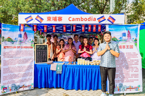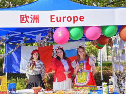 本次开幕式展示了26个国家和地区的文化小屋,各国学生在精心布置的帐篷里展示富有本国风土人情图片、传统服饰、工艺品,邀请来宾品尝各色异域美食,吸引广大师生驻足流连。