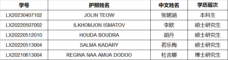 公示期为2024年10月22日-10月28日,如有异议,请于公示期间以书面形式向留学生事务办公室反映。