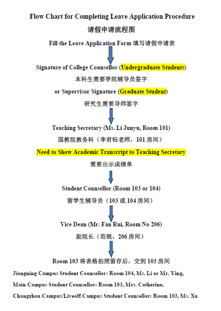If the leave is more than three months, the students need to go to study affair office (Room 101) to apply for suspension.