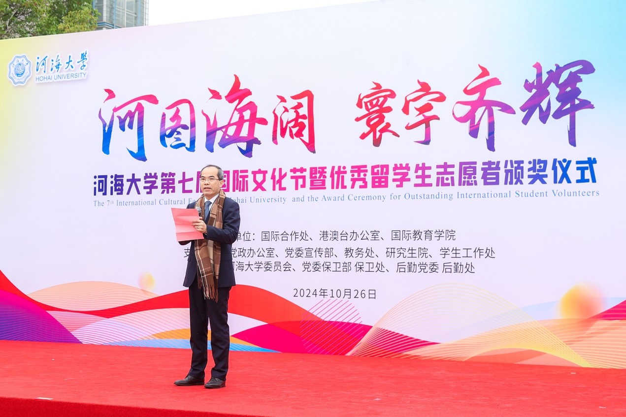 10月26日,在我校建校109周年之际,开云电竞网2024年第七届国际文化节暨优秀留学生志愿者颁奖仪式在江宁校区小浪底广场成功举办。本届文化节以“河图海阔·寰宇齐辉”为主题,来自一百余个国家和地区的师生参与其中。郑金海副校长及校党委宣传部、校团委和校教务处等部门负责人出席活动。