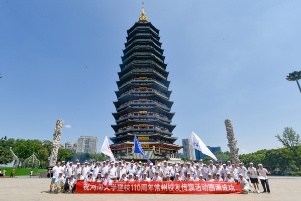 骑行校友们环绕常州天宁宝塔合影,用镜头记录下“河海蓝”与千年地标的美好相遇。