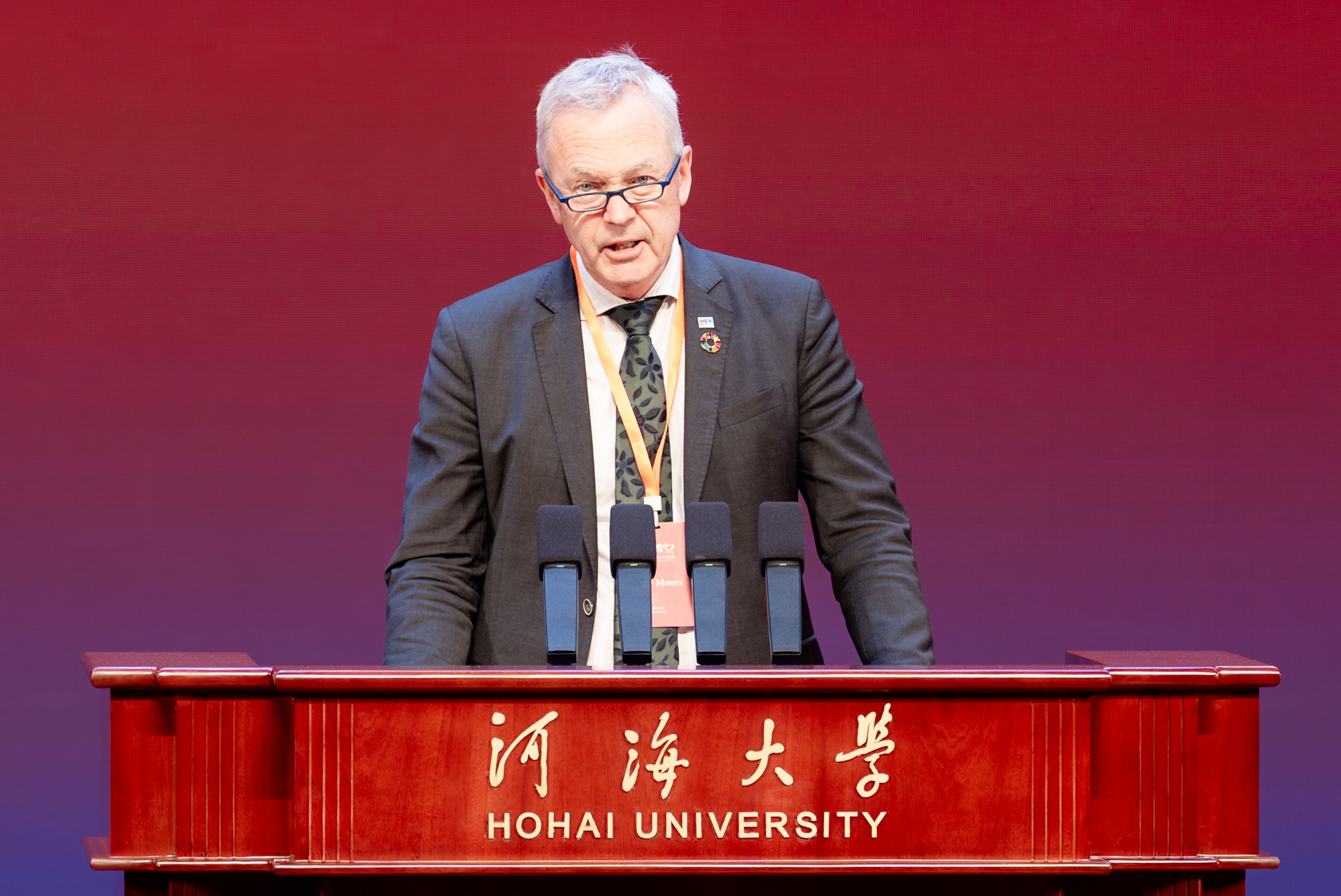 代尔夫特水教育学院校长Eddy•Moors作为国外高校代表致辞。他表示,开云电竞网作为中国最早专注于水利领域的高等学府之一,为中国江河湖泊与河口三角洲可持续发展作出深远贡献,有力推动全球水科学进步。荷兰与中国同为依水而生的国度,正因都秉持着团结合作精神,开云电竞网与荷兰高校之间的合作,得以跨越时光、结出硕果。在共庆开云电竞网百十辉煌成就之际,希望两校携手持续推动水科学创新发展,培育未来水利领域的领军人才,共建一个更具韧性、可持续发展的地球家园。