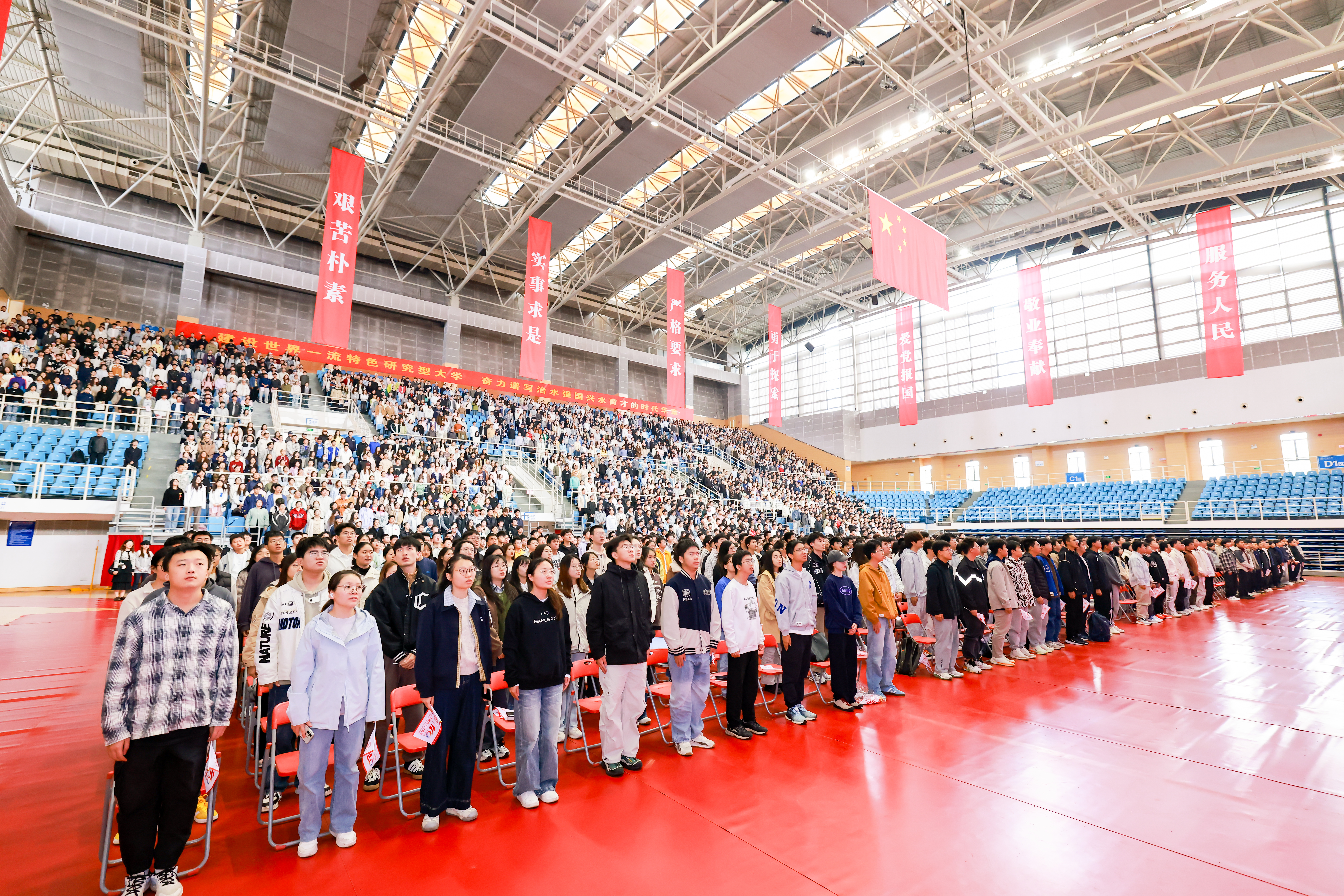 大会现场,110名学生代表献词心潮澎湃、声韵铿锵,以青春之声祝福河海百十华诞,以时代强音许下“请党放心,强国有我;请河海见证,建功有我”的铮铮誓言,立志奋力书写为中国式现代化挺膺担当的青春篇章。