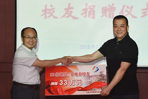 7月1日,能电学院90级电自、农电自校友集体向学校教育发展基金会捐赠33万元。