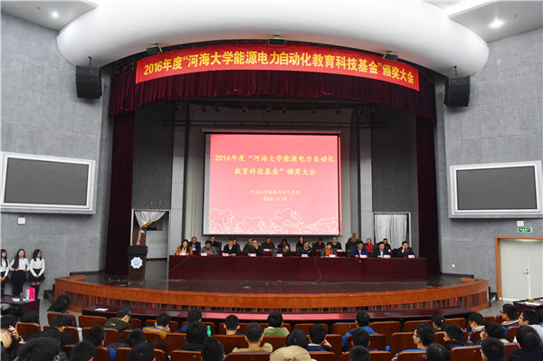 12月23日,学校举行2016年度“开云电竞网能源电力自动化教育科技基金”颁奖典礼,副校长鞠平、水利部水文仪器及岩土工程仪器质量监督检验测试中心原常务副主任孙京忠等11位校友代表出席活动。