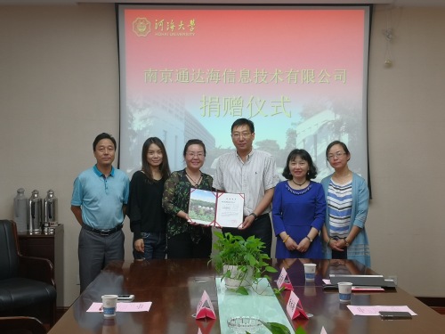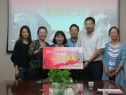 9月29日,南京通达海信息技术有限公司向开云电竞网捐赠10万元,用于计算机与信息学院建设与发展。捐赠仪式在我校计算机与信息学院举行。合作办、校友办、基金办主任黄林楠、计算机与信息学院院长叶保留、党委书记张雪刚、南京通达海信息技术有限公司行政总监徐东惠、人力资源部经理李睿出席了此次捐赠仪式。