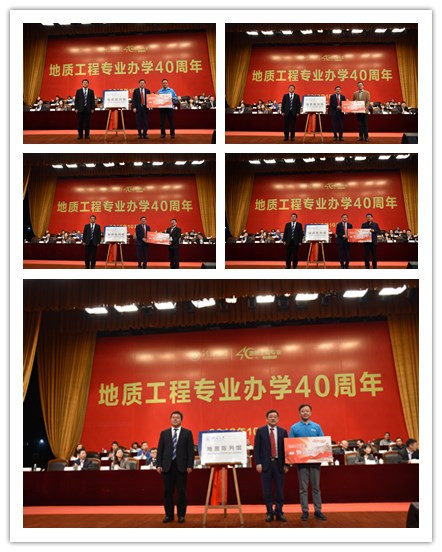 校党委书记唐洪武、副校长许峰、基金办主任黄林楠、地学院党委书记曲永岗代表学校、学院共同接受了各级校友代表的捐赠。