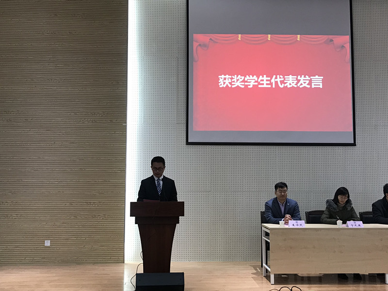 获奖学生代表于浩表达了对上海欣美雅节能环境科技有限公司的感谢,表示将继续努力学习专业知识,发扬力学与材料学院踏实肯干的优良传统,提高自身技能,以实际行动回报上海欣美雅节能环境科技有限公司,回报社会。