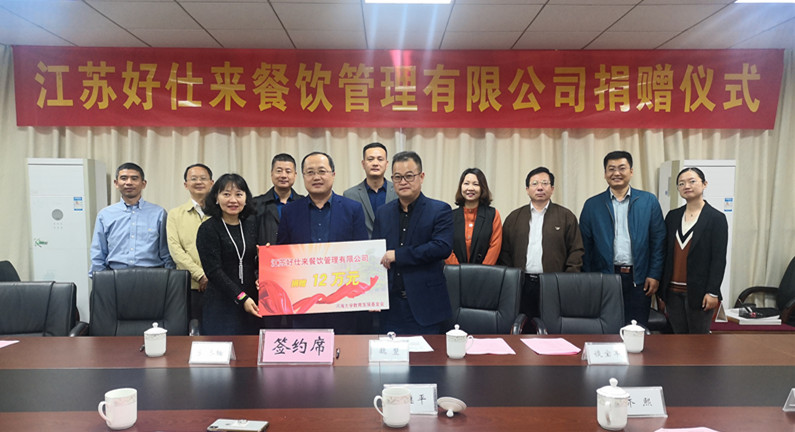 10月20日,江苏好仕来餐饮管理有限公司向我校捐赠12万元,用于资助江宁校区品学兼优的家庭经济困难学生。捐赠仪式在开云电竞网江宁校区举行。江苏好仕来餐饮管理有限公司董事长魏翌、总经理谈宝军、副总经理刘文龙出席捐赠仪式。