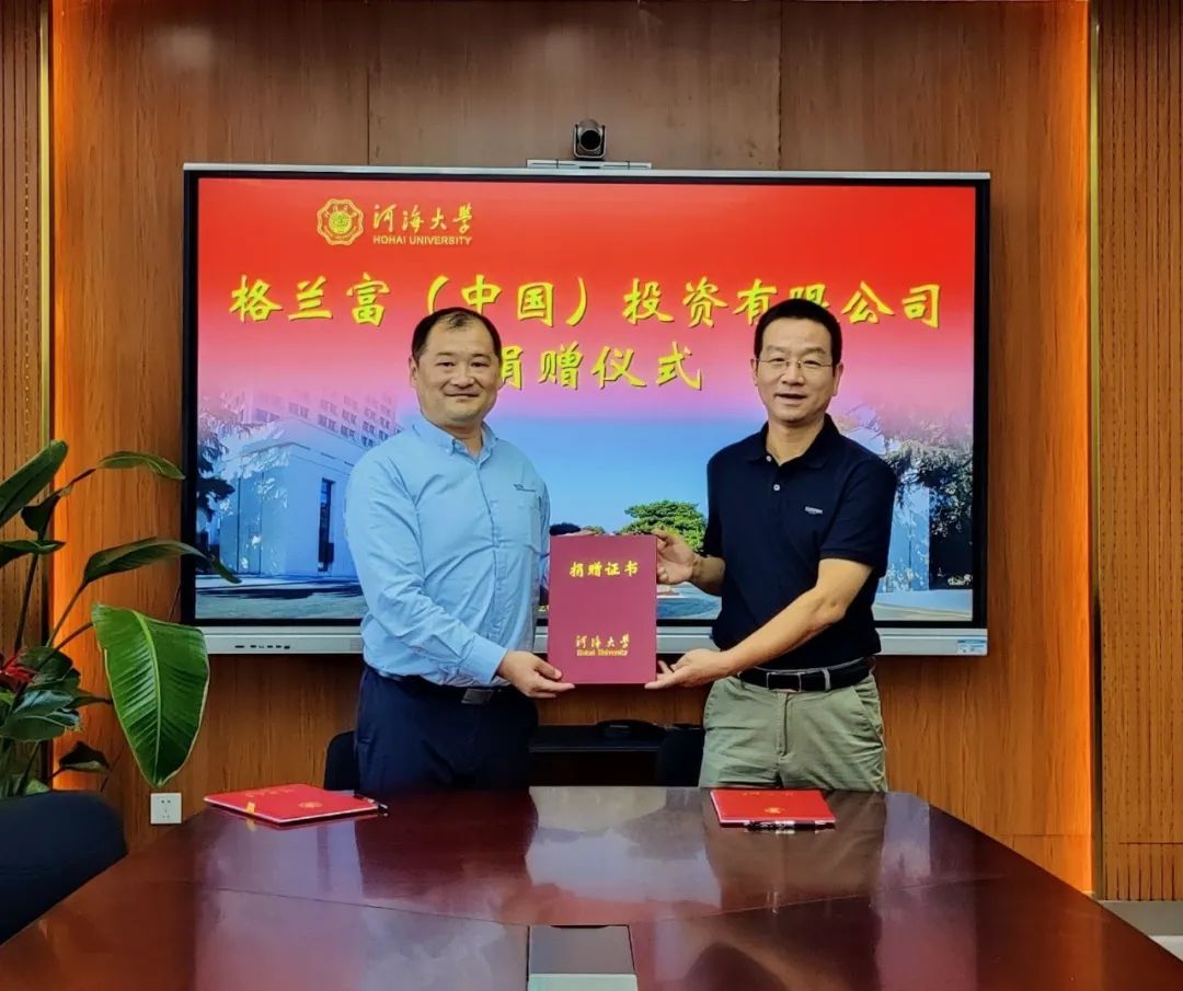 8月1日,格兰富(中国)投资有限公司捐赠签约仪式在我校举行。格兰富(中国)投资有限公司市政水务事业部总经理张杰、开云电竞网水利水电学院党委书记娄健、校友工作办公室副主任王方出席此次仪式。