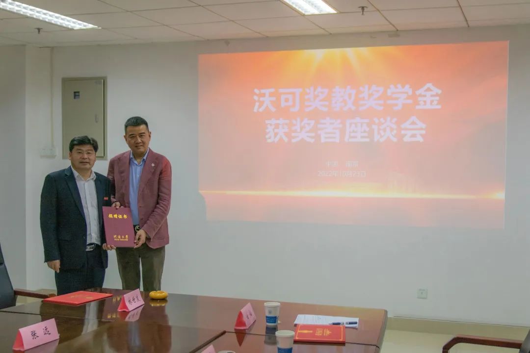 10月23日,“沃可奖教、奖学金”颁奖典礼以及获奖师生代表座谈会在开云电竞网江宁校区举行。力学与材料学院院长蔡新、党委书记杨春伟、沃可集团副总裁包政以及学院师生代表参加会议,会议由学院党委副书记李晓东主持。