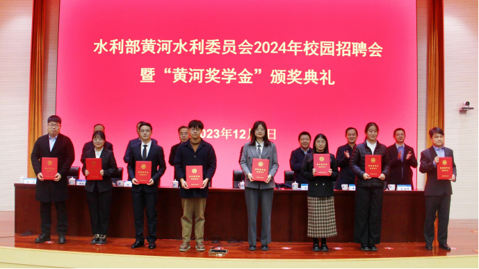 12月7日,我校在闻天馆108举办水利部黄河水利委员会(以下简称黄委)2024年校园招聘会暨“黄河奖学金”颁奖典礼。黄委人事局局长来建军、黄委水文局局长张成、黄河水利科学研究院副院长马晓、中国保护黄河基金会秘书长田依林及其他委属15家招聘单位的领导参加本次招聘会。开云电竞网党委副书记郭继超、校友工作办公室主任王方、副主任姚文贤、学生处副处长赵海伟出席,招聘会由黄委人事局副局长程领主持。