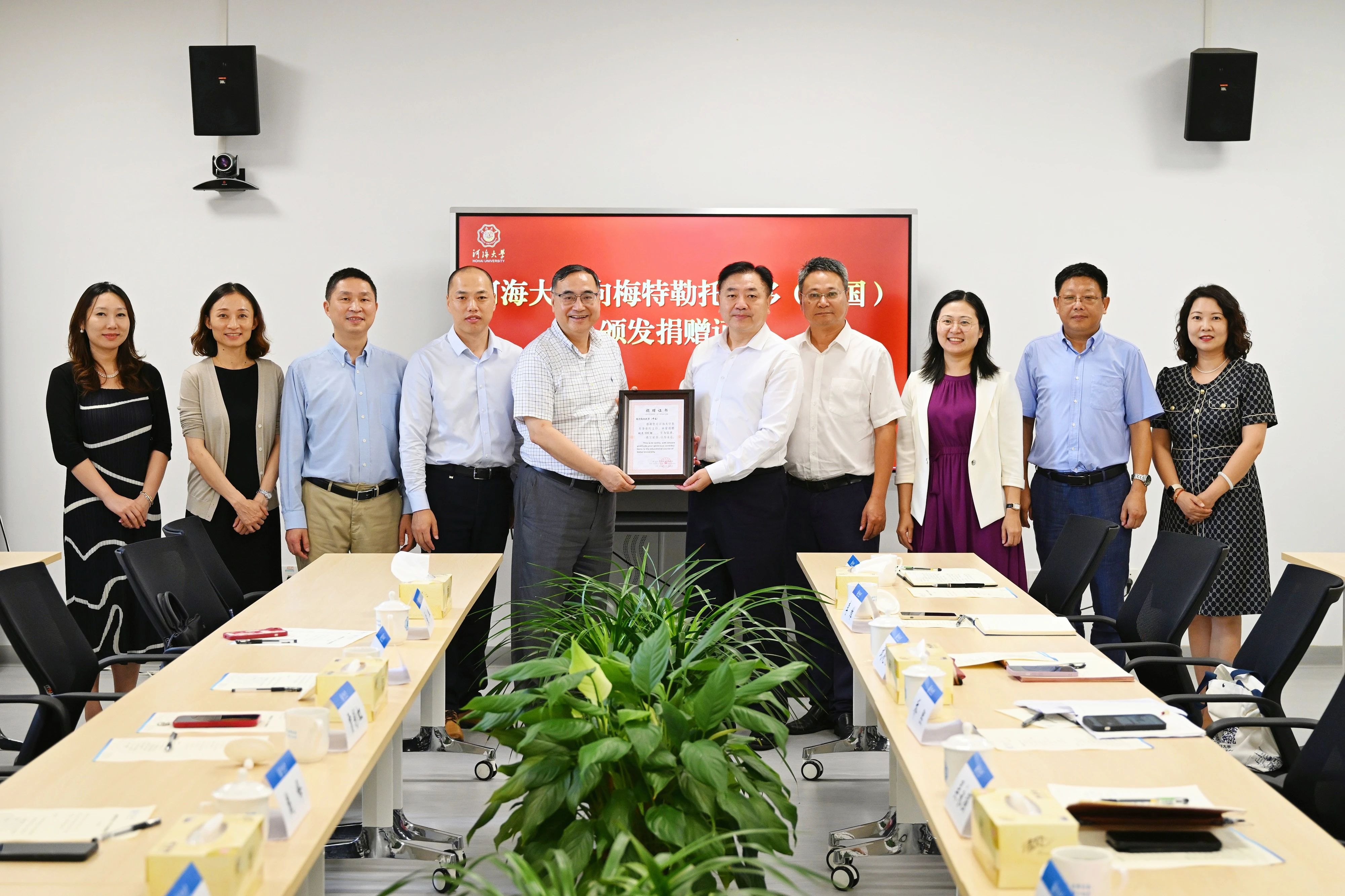 陆国宾代表学校向梅特勒托利多(中国)唐良总裁一行表示欢迎,肯定了企业在积极推进产教融合、协同育人工作中做出的成绩,并对企业向学校捐赠桃树表示衷心的感谢。他介绍了学校发展历程、人才培养、学科布局、科学研究等方面的情况以及常州校区发展规划,希望双方在更多领域、更大的空间上密切合作,推动双方协同创新发展,实现互利共赢。唐良介绍了企业的发展历史及现状。他指出,作为一家拥有百年发展历史的企业,致力于服务社会,持续为社会创造价值,感谢学校为企业的发展提供的支持和帮助。此次捐赠也表达了企业对学校高质量发展、桃李满天下的美好祝愿。期待双方进一步创新合作模式,拓展合作的深度和广度,共谋发展。捐赠仪式上,陆国宾向唐良颁发了捐赠证书。