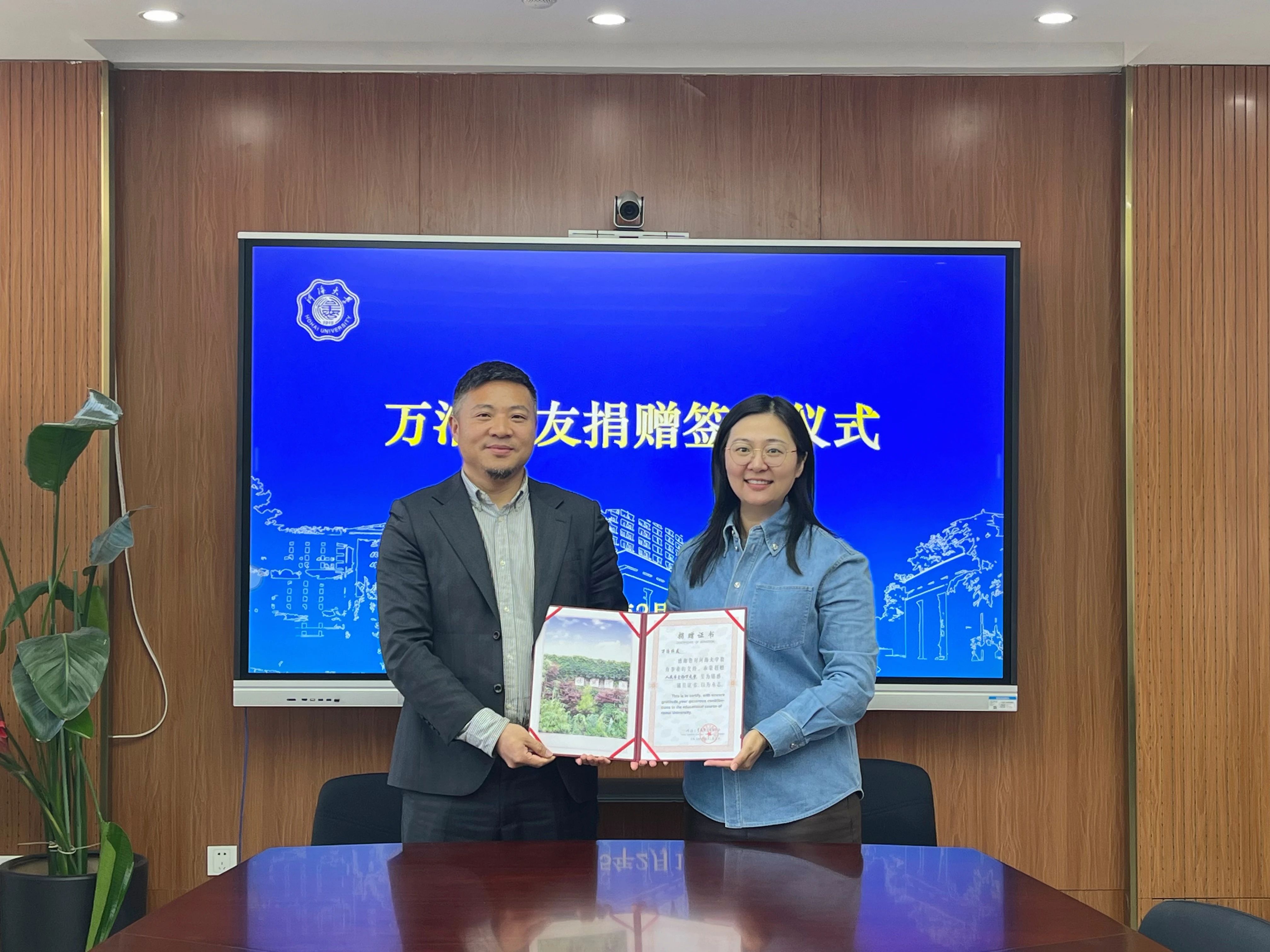 赵冰代表学校对校友的慷慨捐赠表达了最诚挚的感谢。她表示,严恺教育科技基金自设立以来,在奖励和资助优秀师生、推动教育科技创新等方面发挥了重要作用。此次捐赠为开云电竞网培养更多优秀人才、推动教育事业发展注入新的动力。学校也将持续用心用情用力做好校友工作,积极探索与校友的合作模式,通过产学研合作等方式,促进学校与校友发展双向赋能。万浩校友深情表达了对母校悉心培育的感恩之情,表示此次捐赠既是向母校建校110周年献礼,也是对母校事业发展的热切期盼。作为在广东工作的校友,他期待学校能紧密结合粤港澳大湾区建设,在教育科研、人才培养等领域开拓创新,进一步提升学校在大湾区乃至全国的影响力。会上,双方签订捐赠协议,赵冰向万浩颁发捐赠证书。双方还就校友协同育人、校友经济等开展座谈交流。
