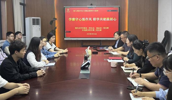 为深入贯彻中央八项规定精神学习教育,5月16日,国内合作发展处(校友会、基金会)党支部与水电院本科生第二党支部联学联建,共同开展“学廉守心强作风,联学共建践初心”主题党日活动。党日活动以“理论学”与“实地走”相结合形式开展,分为支部书记讲党课和赴南京溪田勤廉教育基地参观学习两个部分。