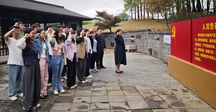随后,师生党员共赴南京溪田勤廉教育基地实地学习,参观廉政文化展馆、观看《风腐同查同治》视频,通过图文展板、视频资料及实物展示,生动展示了廉政历史案例与典型案例。实地体验“茶、竹、莲、松”四大廉洁文化主题展区,感悟“茶之淡泊、竹之正直、莲之高洁、松之坚韧”的廉洁文化内涵。活动最后,党员们在廉政园区重温入党誓词,以庄严宣誓强化廉洁自律意识,砥砺初心使命。