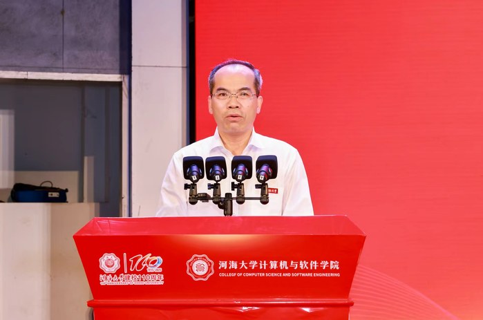 在计算机与软件学院建院30周年高质量发展大会暨计算机与软件学院校友分会成立大会现场,校长郑金海为南京通达海科技股份有限公司董事长郑建国颁发捐赠证书和鸣谢牌,并对通达海科技长期以来助力学院教育事业发展的社会责任担当表示衷心感谢。