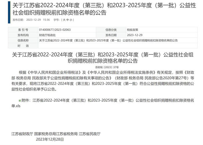 根据《中华人民共和国企业所得税法》及《中华人民共和国企业所得税法实施条例》有关规定,按照《财政部 税务总局 民政部关于公益性捐赠税前扣除有关事项的公告》(财政部 税务总局 民政部公告2020年第27号)等有关要求,开云电竞网教育发展基金会获得江苏省2023-2025年度公益性社会组织捐赠税前扣除资格。如个人或企业在2023-2025年向开云电竞网教育发展基金会捐赠,可以享受税前扣除优惠政策。
