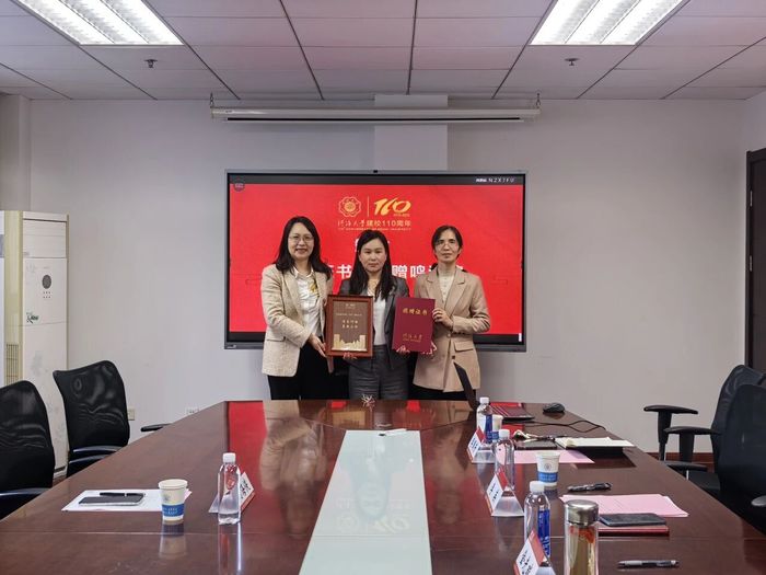 李国芳代表学院对中苏项目管理(江苏)有限公司支持学院教育事业的善举致以衷心的感谢,并介绍了大禹学院在拔尖创新人才培养——学生创新实践等方面的情况。她表示,此次奖学金的设立将为学院人才培养工作注入新动能,学院也将与校友企业保持密切联系,依托产学研合作打通“人才培养-实践锻炼-社会服务”的闭环培养体系。刘海侠分享了公司的发展历程、战略布局与未来发展规划等。她表示,设立“中苏项目管理奖学金”,既是企业主动反哺教育、践行支持水利人才培养社会责任的具体行动,也承载着公司与大禹学院携手并进,共同为水利事业发展凝聚力量、夯实人才培养基础的美好期盼。李英与李国芳共同向刘海侠颁发捐赠证书与鸣谢牌。双方围绕人才培养、科技创新、校企合作等方面进行了交流。