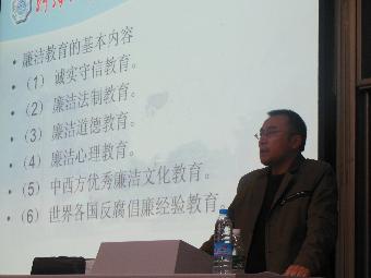 晚上六点半,讲座正式开始了。首先,陈书记从廉洁的重要性讲起,通过讲述古罗马以及古希腊等古代国家对于廉洁的重视来强调廉洁在一个国家治理中的必要性。随后,他提到了在中西方孩子们的成长过程中,接受到的廉洁教育的不同。指出了在廉洁教育方面,中国的孩子所获得的知识略有欠缺。之后的讲述中也有提到不同国家在开始进行道德教育上的时间差异。不仅是孩子,当代的大学生也同样对廉洁教育存在着误区。陈书记通过简短的三句概括,表达了对大学生能够重视廉洁的殷切希望。