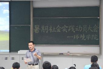 2015年5月8日,由环境学院开展的暑期社会实践动员大会在致用楼201教室展开。参与此次动员大会的有环境学院党委曹松祥副书记,院团委书记曾莉老师,院科协主席刘洋,及三位13级优秀社会实践小组成员。