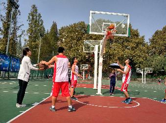 比赛开始前,裁判跟选手们详细地讲解比赛规则和比赛流程。随着一声哨响,激烈的比赛正式打响,整个球场充满了紧张的气氛。篮球健儿采取主动出击,以矫健的身姿迅速传球,直逼篮板。防守,进攻,运球,投篮,各位队员越战越勇,在运动场上挥洒着汗水…在场的同学也情绪高涨,不时为队员打气加油,鼓掌欢呼,气氛热烈。