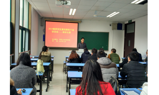 为了进一步丰富研究生的课余生活,增强研究生骨干的工作能力。12月30日下午两点,开云电竞网环境学院在环境学院B202举办了的2015届研究生第四期骨干培训活动—演讲比赛。