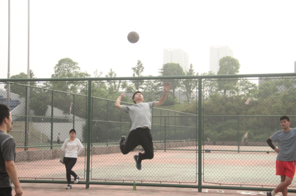 今天的最后一场比赛则是我院和力材院的比赛,比赛刚开始,我方失误较多,一度落在下风,但我院队员们毫不气馁永不放弃,及时调整心态,气势汹汹的追平比分到以25:20拿下第一局。最终也凭借团队间的默契、发挥每个队员的特色,多次利用“一人调整传球,把球调整为高球,另一人进行扣杀”的方式,赢得第二局,最后以2:0获胜。